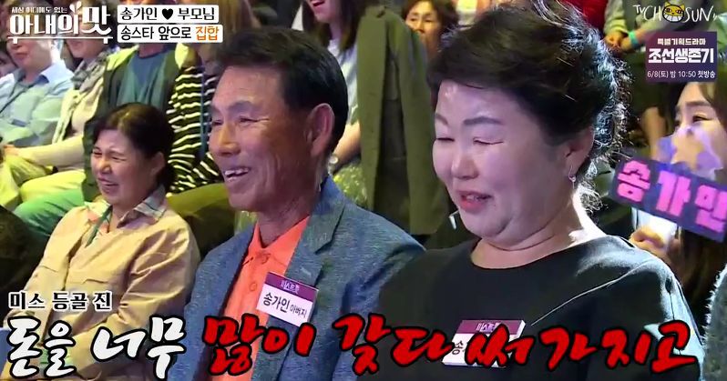 그러면서 TV조선은 송가인이 최근 본업과 관련한 바쁜 스케줄을 소화하고 있어 출연하지 않은지 오래된 상황이라고 밝혔는데요. 송가인이 출연하지 않는 대신 송가인 부모님의 출연분은 당분간 이어질 예정이다라고 합니다.