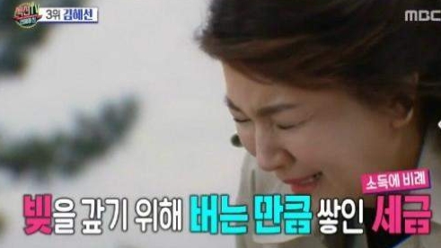 김혜선 : "두번째 남편이 외국에 투자하면서 빚을 17억원이나 졌다. 이혼할 때 남편이 빚을 떠안아주면 딸의 양육권과 친권을 주겠다고 해 그럴 수밖에 없었다."