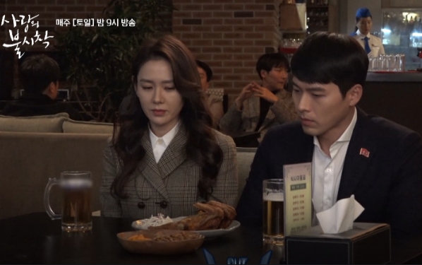 2020년 1월 29일 방송된 '사랑의 불시착'에서 손예진과 현빈이 평양 치맥 데이트를 하는 장면에서 테이블 밑으로 손을 잡는 모습이 포착됐습니다. 특히 해당 장면이 포함된 메이킹 영상을 보면 실제로 손예진과 현빈이 테이블 아래에서 손을 잡고 있는 것처럼 보입니다.