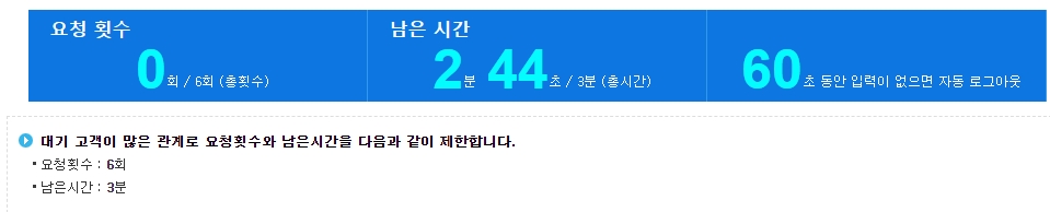 그러면 아래와 같은 대기 화면 뜹니다. 창을 닫으면 처음부터 다시 시작하니 계속 기다려 주세요. 보통 대기자순이 1만명을 넘어가는 경우도 있습니다. 절대 창을 닫지 말아주세요.