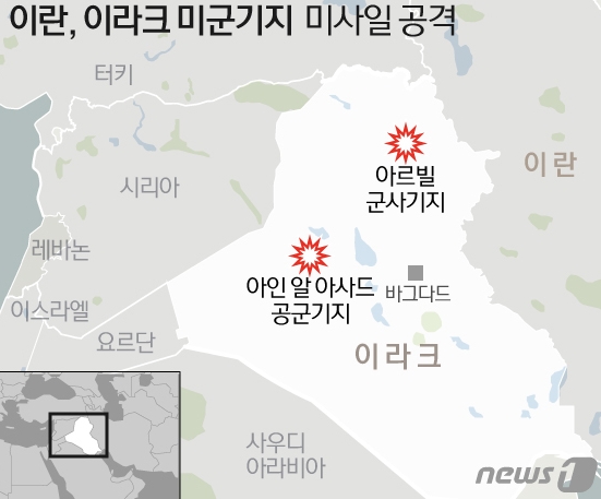 그런데 이라크 측에서 좀더 객관적인 결과를 내놓았습니다. 이라크 군 당국은 이날 오전 1시 45분∼2시 15분께 미사일 22발이 날아와 17발 중 2발이 불발되고 알아사드 기지에 떨어졌으며, 나머지 5발은 에르빌 기지 내 국제 동맹군 사령부에 각각 떨어졌다고 발표했습니다.