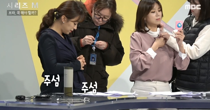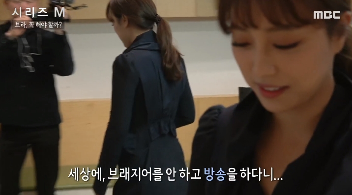 즉 임현주 아나운서가 일부로 그런 것이 아니라 MBC의 다큐멘터리 프로그램 ‘시리즈 M’의 ‘별의별 인간 연구소’ 편에서 “인간에게 브/래/지/어가 꼭 필요할까?”라는 주제로 방송을 찍었기 때문이죠. 그리고 이 프로를 위해 MBC의 임현주 아나운서는 과감하게 브/래/지/어를 벗어 던지고 생방송을 실제로 찍었습니다.
