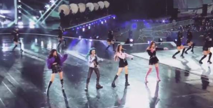 그리고 바로 아래 장면은 구미호 아리가 여자 아이들과 함께 증강현실 무대를 마련한 공연 장면이다. 즉 여기 등장한 아리 의상을 그대로 재현해 조현에게 주최 측히 입혔음을 알 수 있다. 그리고 조현은 최대한 해당 의상에 맞게 코스프레를 하고 무대에 올라섰다.
