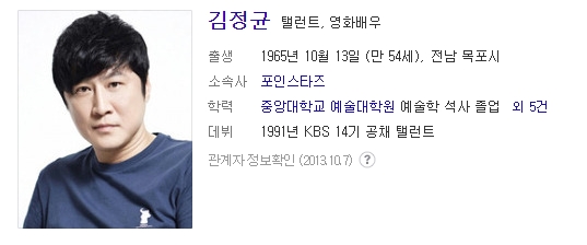 한편 김정균은 데뷔 직후인 1992년 KBS2 드라마 '내일은 사랑'에서 차헌성 역을 연기하며 개성파 연기자로 주목을 받았죠.