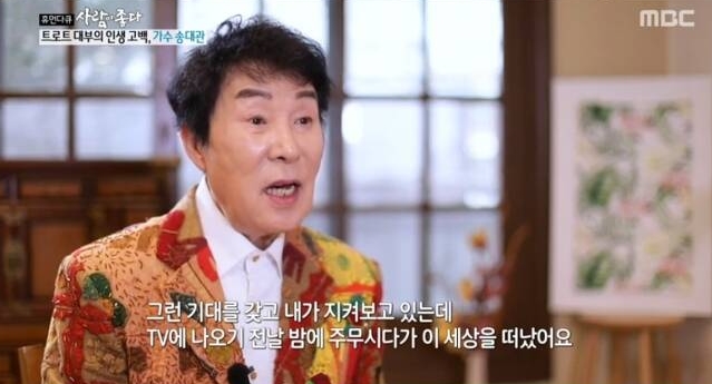 송대관은 휴먼다큐 사람이좋다에 출연하기전에도 이런 스토리를 공개한 적이 이었는데요. 사실 송대관의 전성기는 젊은 시절이었습니다. 바로 MBC '라디오스타'에서 나와서 했던 말인데요.