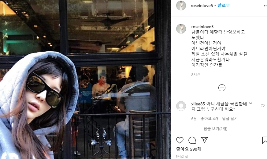 하지만 장민인애 인스타에 올라온 글을 보며 동조하는 분들도 많은 걸 보니 장미인애 비판이 통하긴 했나 봅니다. 앞으로 장미인애가 그들 때문에 더 용기를 내실 것 같네요. 아무튼 자신의 의견을 표출하는 것은 자유이니까요.