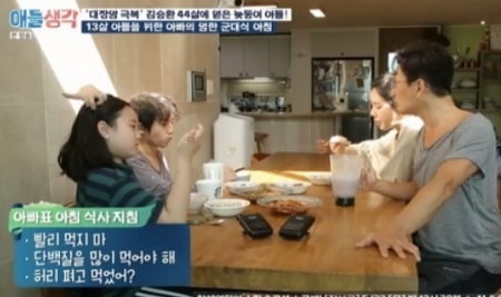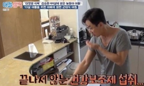 그렇다면 김승환은 무엇을 했을까요? 알고 보니 집에서 초등학생인 두 아이의 아침 식사를 챙겨주고 설거지며 집안 청소를 하며 지냈다고 하더군요. 아무래도 항암 치료 때문에 쉽사리 일에 나서지 못했던 게 아닐까 싶네요.