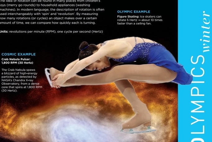 나사는 이 코너에서 김연아의 연기 장면을 포스터로 만들어 소개하며 우주에서 일어나는 현상과 선수들이 공유하는 물리적 법칙을 알기 쉽게 설명해 화제가 되었죠.
