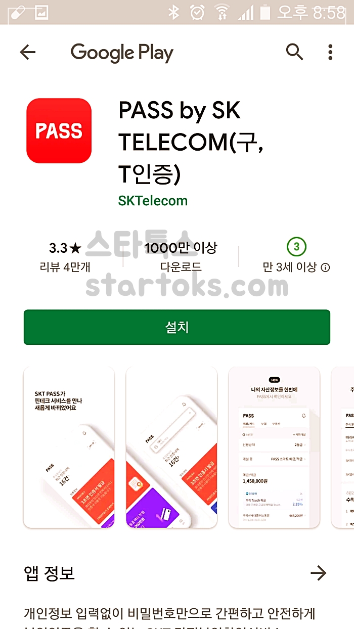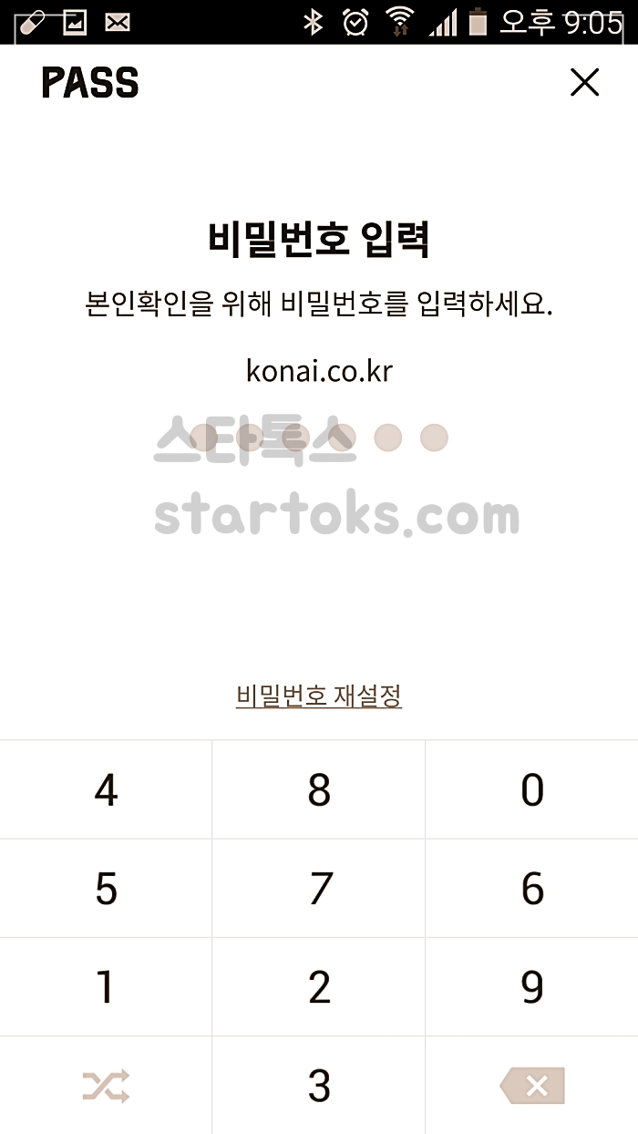 ▲PASS 어플 동의 설치를 해줍니다. 그러면 아래처럼 비밀번호 설정화면이 나옵니다.
