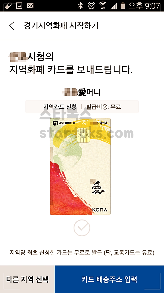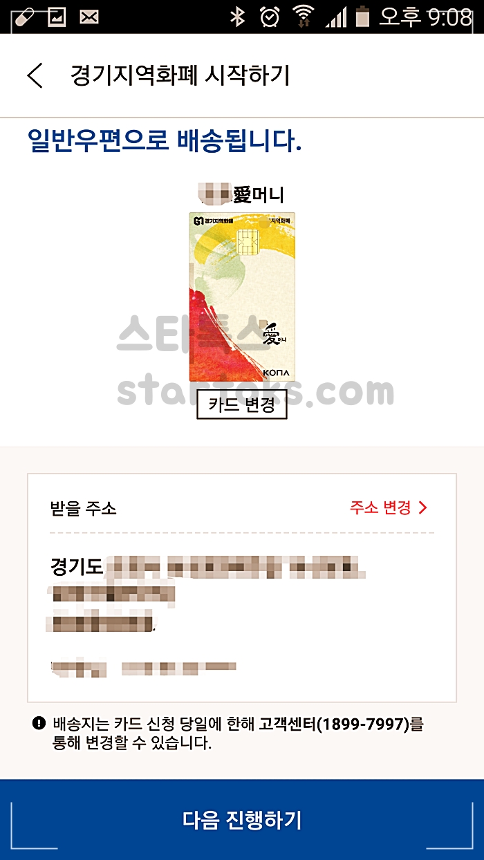 ▲해당 지역의 경기지역화폐 카드 신청 후 배송 주소지를 입력합니다.