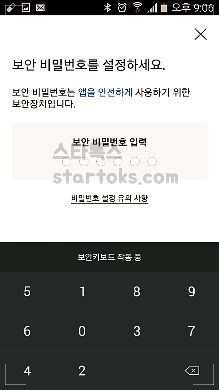 ▲PASS 어플 동의 설치를 해줍니다. 그러면 아래처럼 비밀번호 설정화면이 나옵니다.