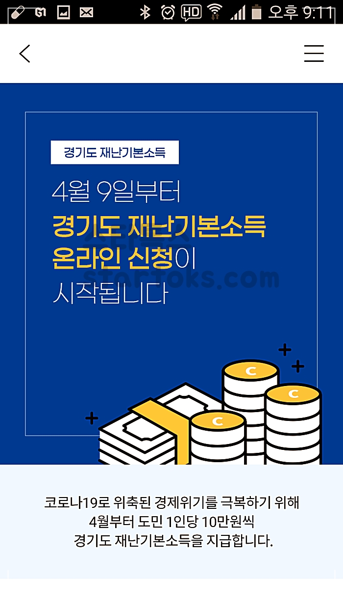 경기도 재난기본소득 홈페이지에서 경기지역화폐카드와 신용카드 사용 온라인 신청 기간은 4. 9 ~ 4. 30까지 입니다. 그중 가장 간단한 경기지역화폐 신청 방법은 구글플레이나 원스토어를 통해 어플을 설치한 후 카드번호 입력 및 핸드폰 본인 인증을 거치며 간단하게 경기도 재난기본소득을 신청할 수 있습니다.